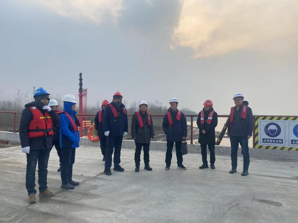 12月20日下午,省海事中心陳剛部長一行親赴池州港烏沙港區(qū)公用碼頭工程施工現(xiàn)場督導工作,市交通局、烏沙港口公司、各參建單位相關(guān)負責同志陪同檢查。